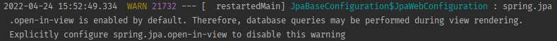 이처럼 애플리케이션 시작 시점에 warn 로그를 남긴다.